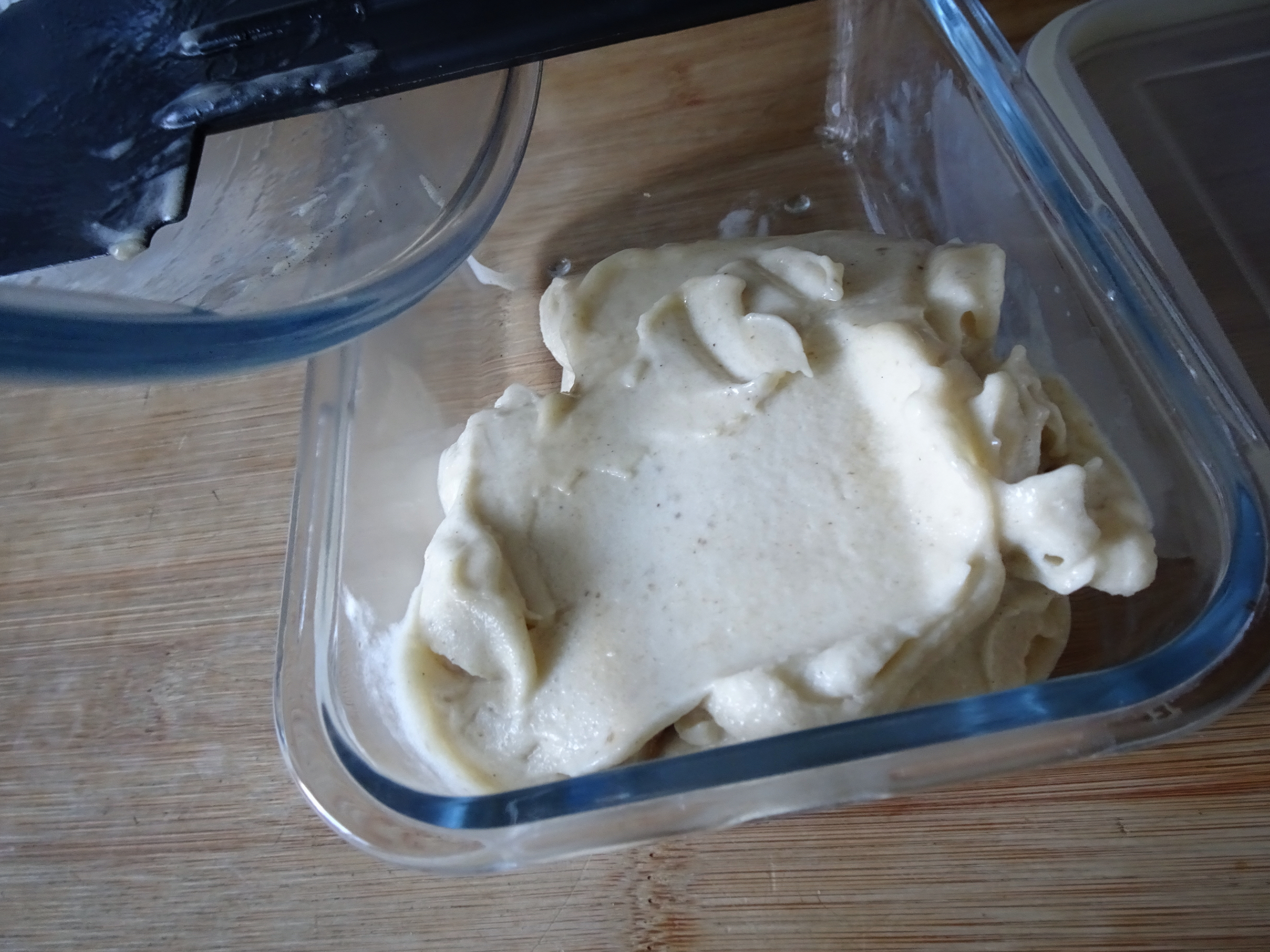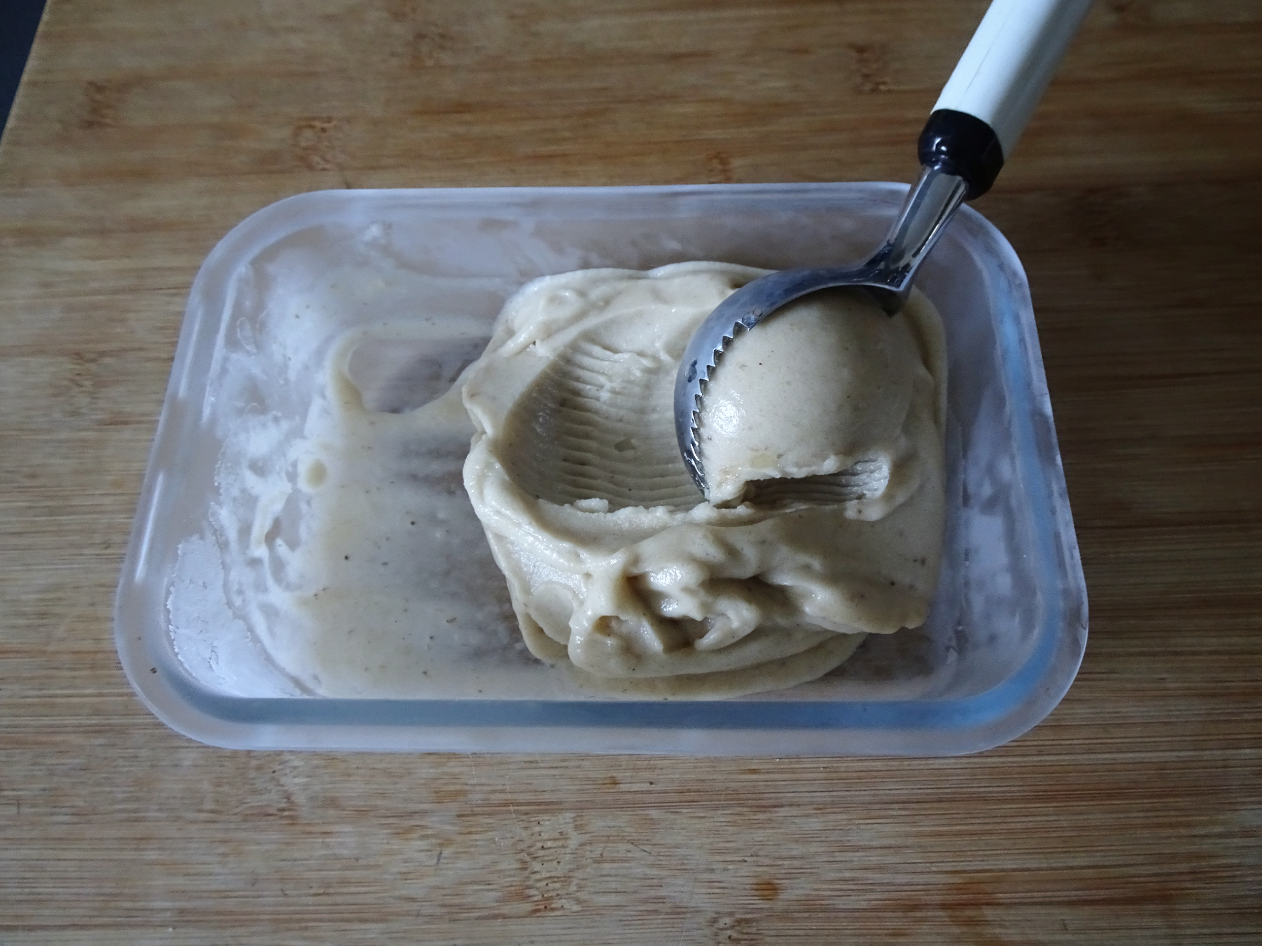 If you store the banana ice cream in the freezer for a longer period of time, it will become hard as a rock. Just move it to the fridge to soften for aprox. 30 to 45 min before eating.