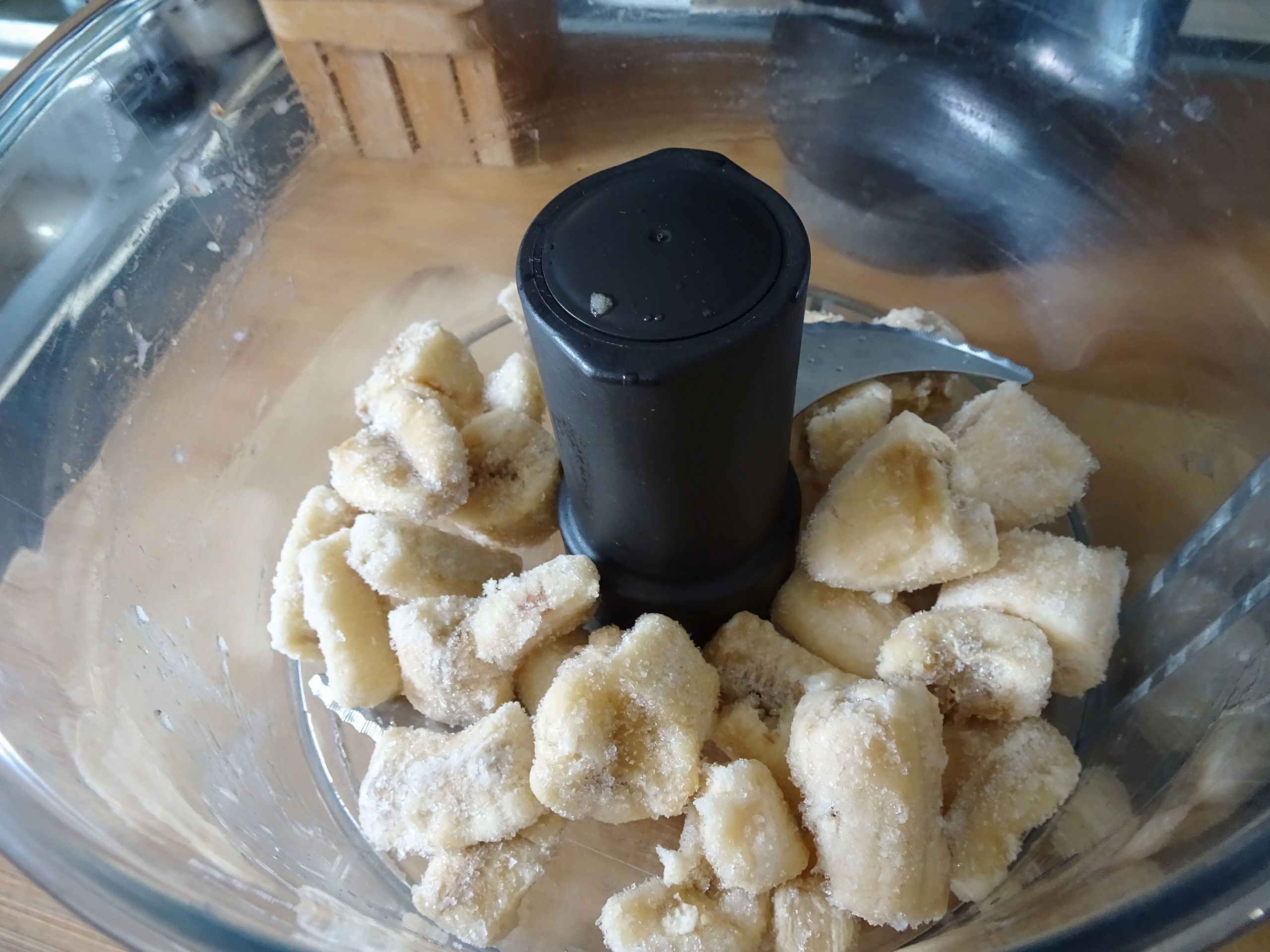 - Add your frozen bananas into a food processor or vitamix. Ideally they should be chopped before freezing.