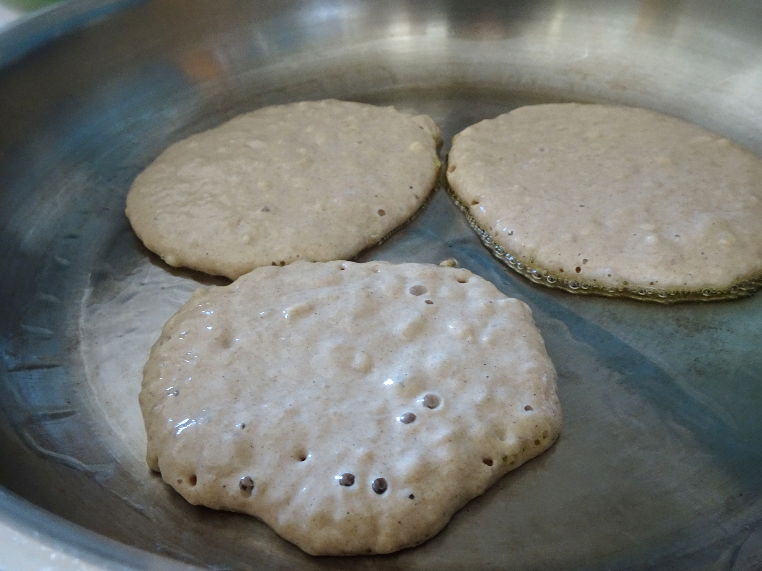 - Fry the pancakes on medium heat and carefully flip them once brown.