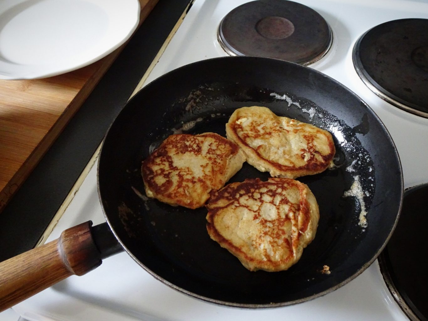 - Die Pancakes bei mittlerer Hitze braten und vorsichtig wenden, sobald sie braun sind.