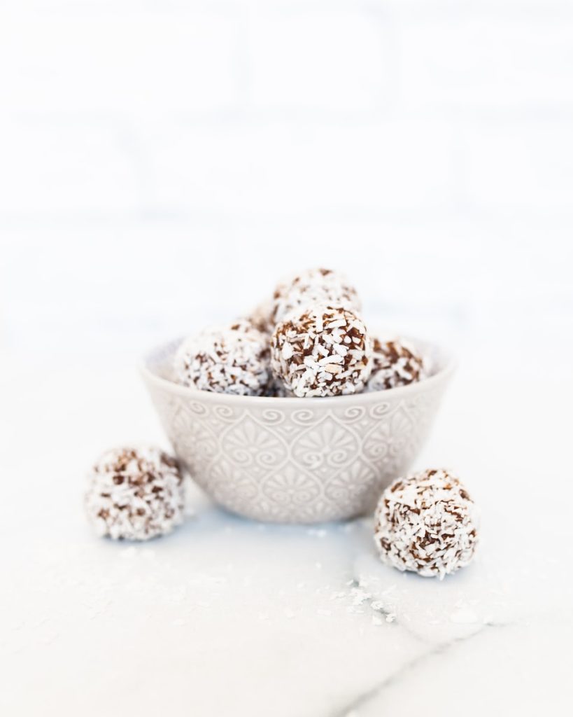 - Roll the mixture into balls using your hands, then roll the balls in the shredded coconut to coat.