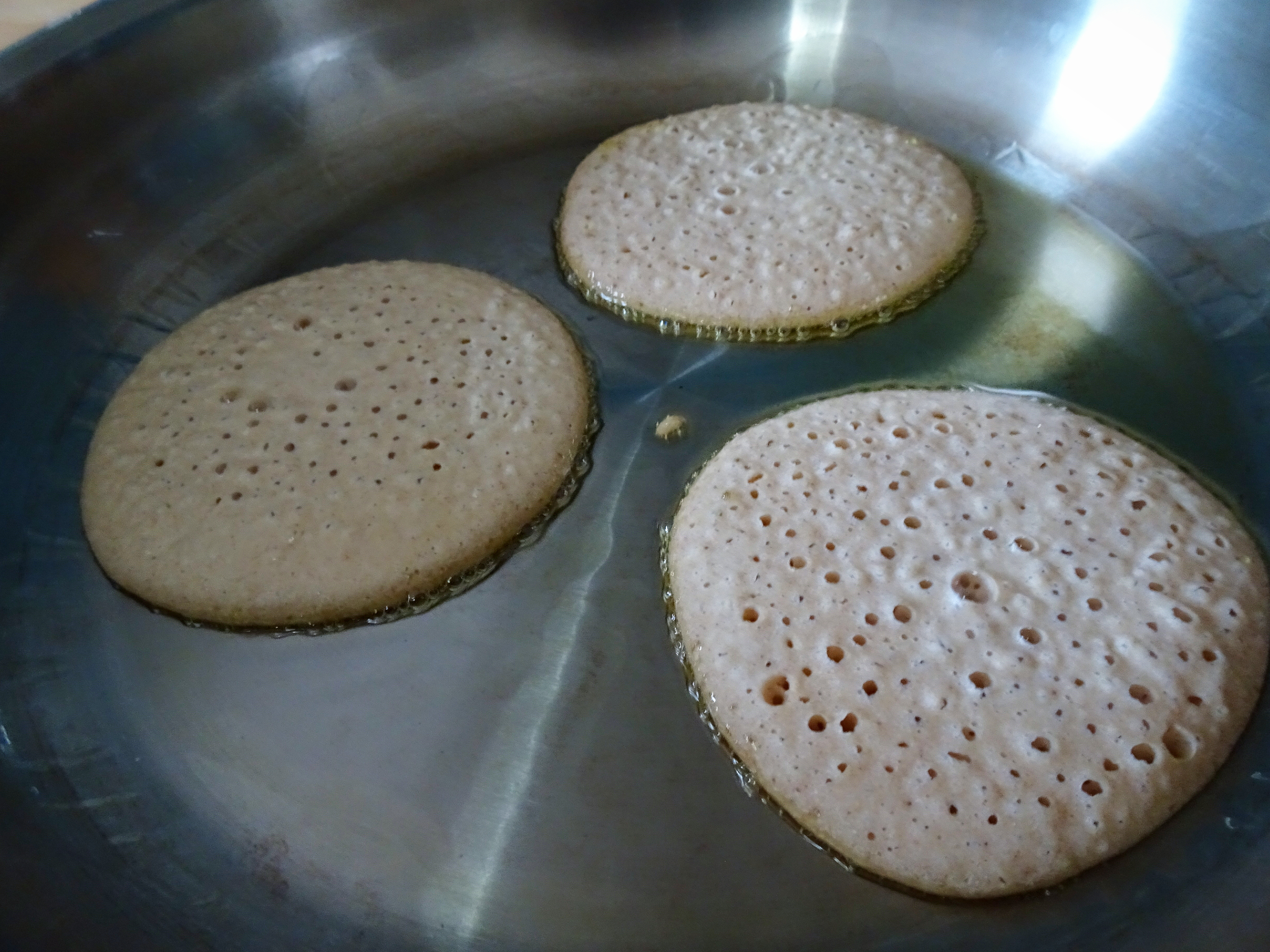 - Fry the pancakes on medium heat and carefully flip them once brown.