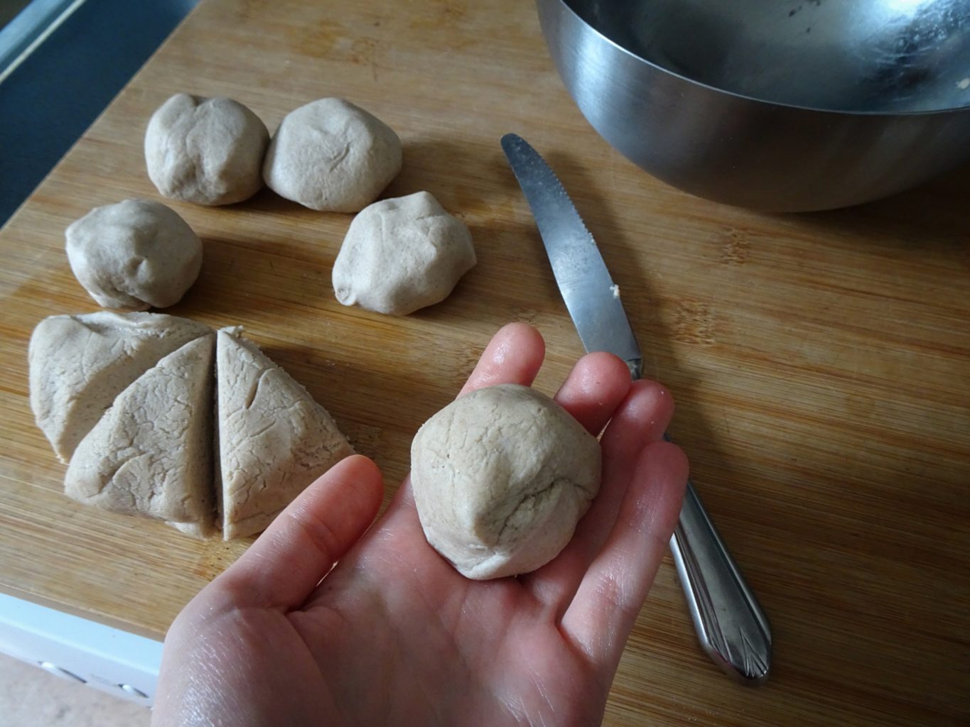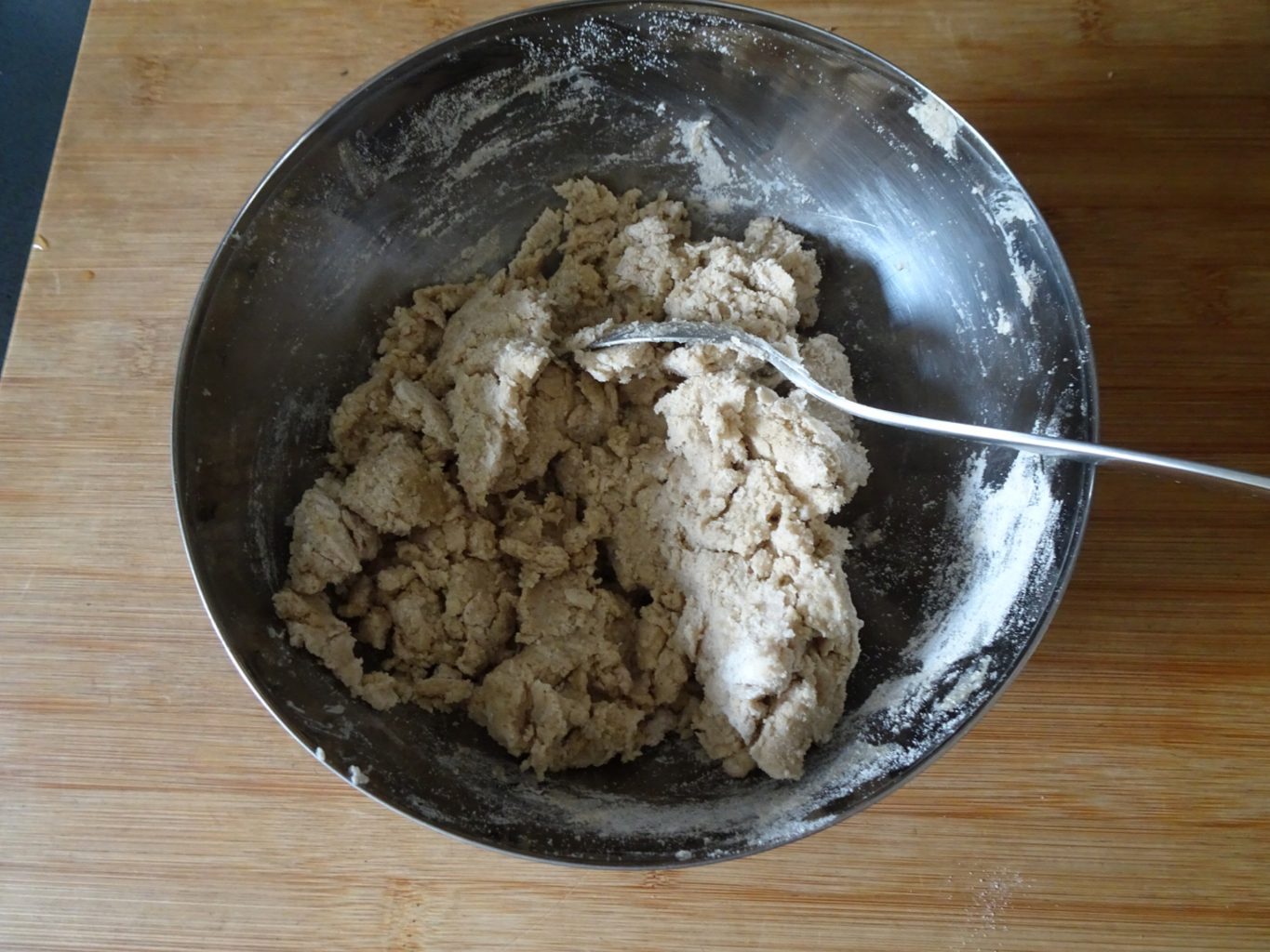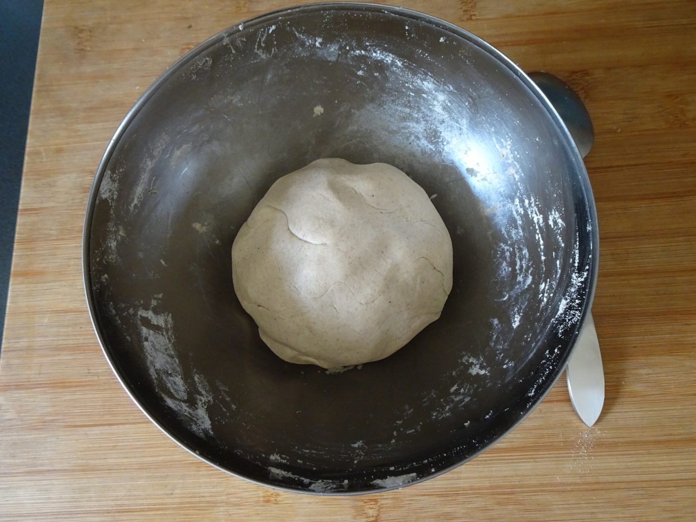 - Then use a spatula to scrape the dough from the sides of the bowl and press against the rest of the dough, once cool enough form into a ball with your hands.