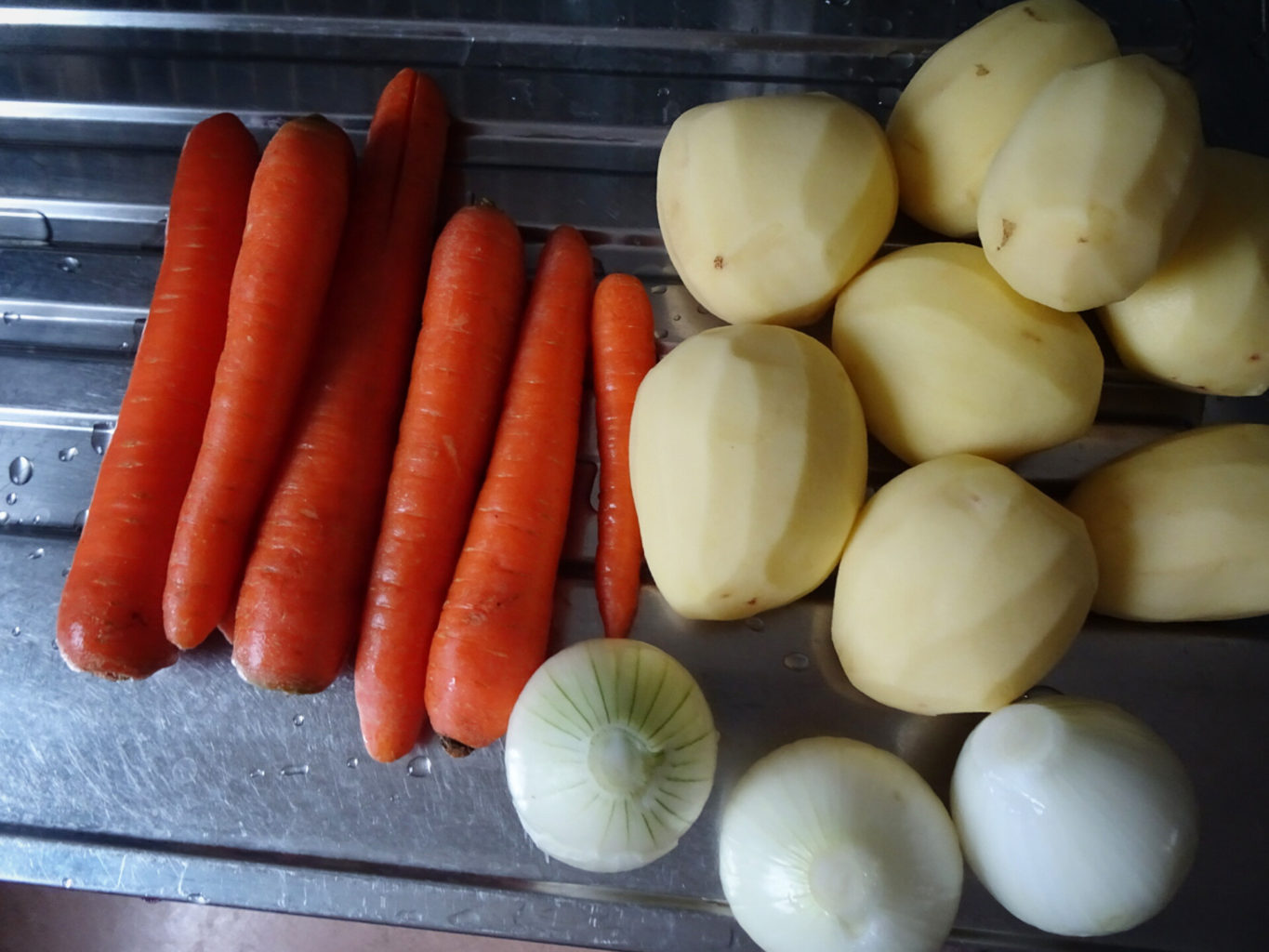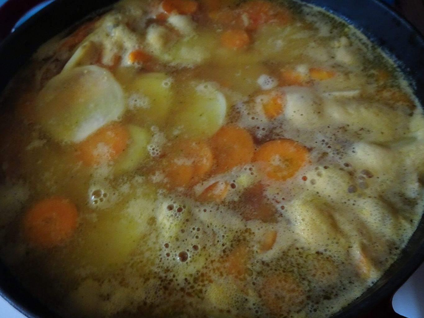 - Saute for a moment, then add the water and vegetable stock cube and bring to boil.