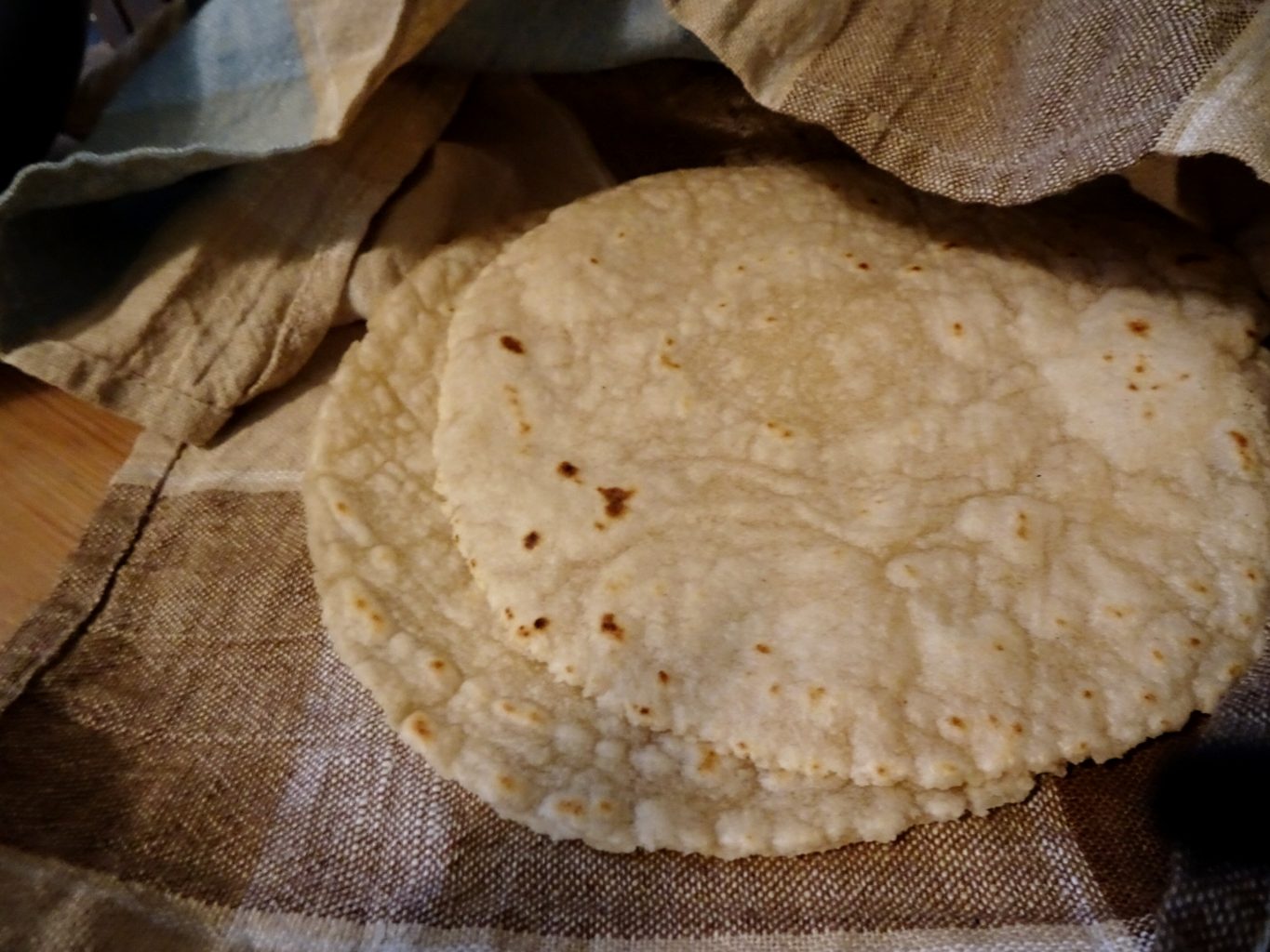 - Die fertigen Tortillas in einem Geschirrtuch aufbewahren, um sie warm zu halten. Sie sollten sehr weich und elastisch sein. Für mich wirkten sie fast wie Crêpes.