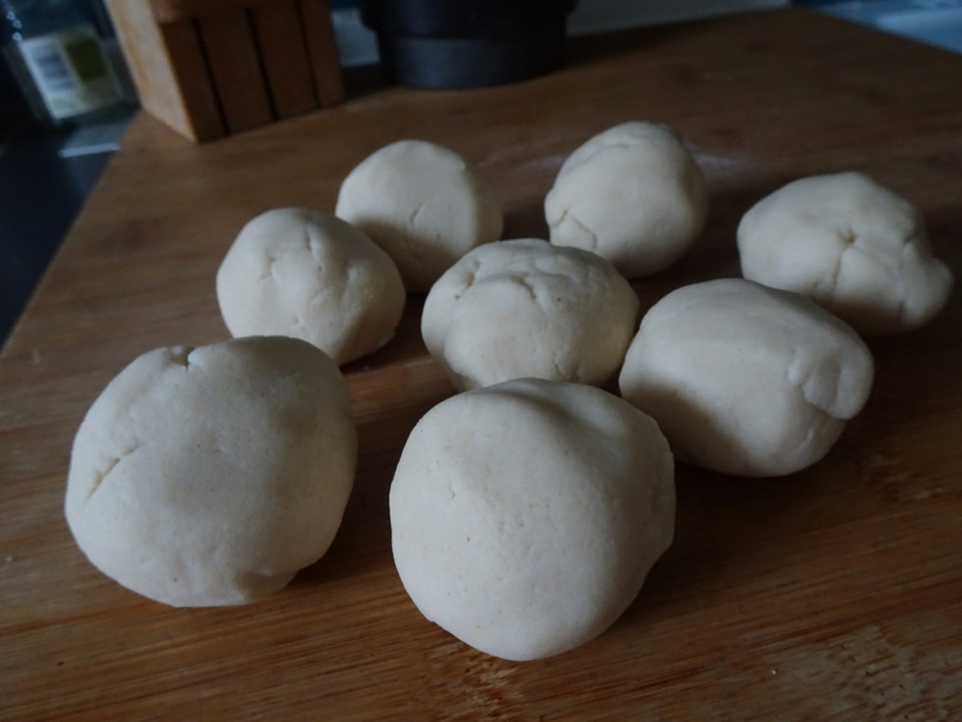 - Alle Zutaten miteinander vermengen und zu einem glatten Teig kneten.
