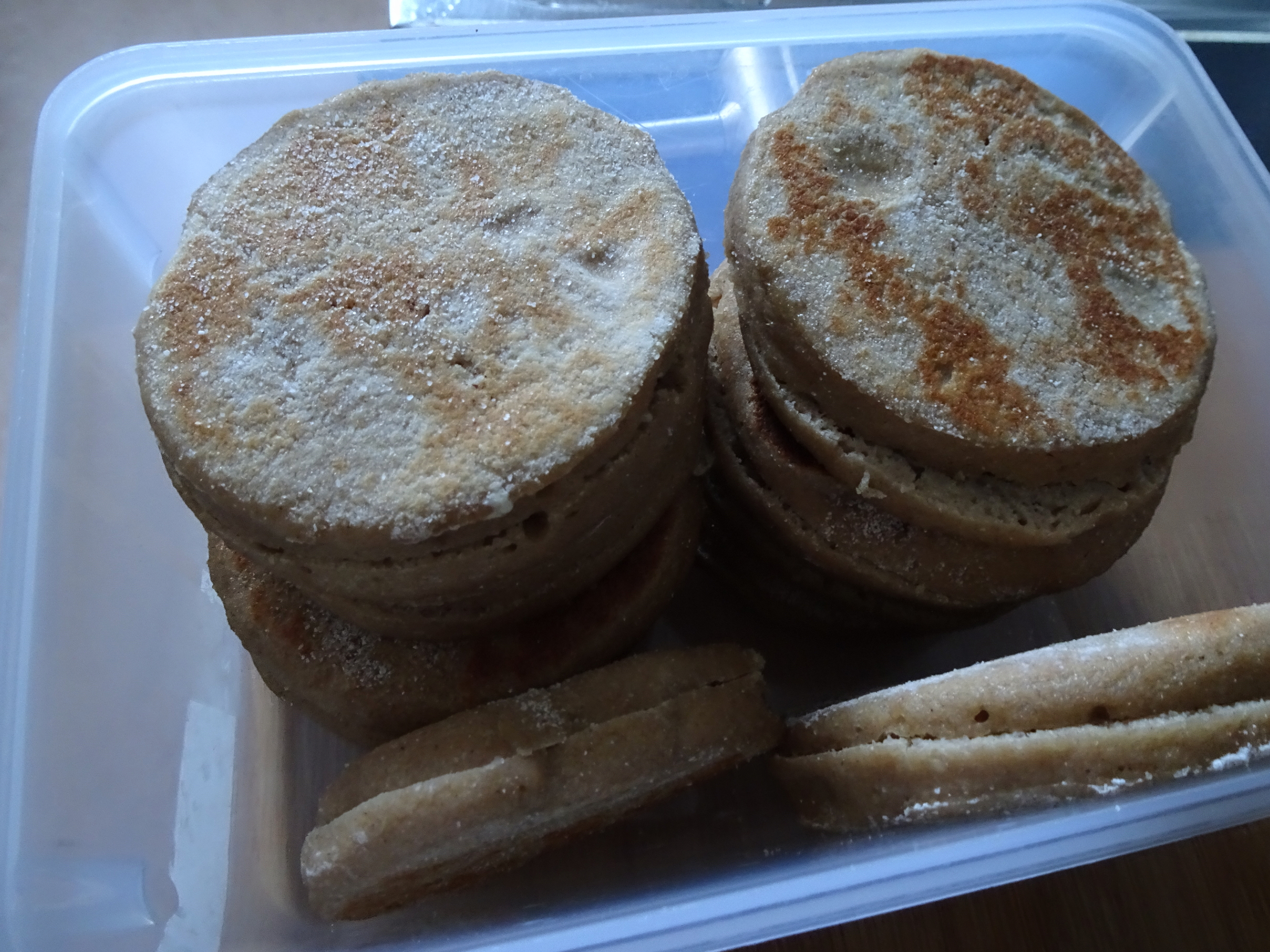 Don’t forget to toast them before eating! They need a higher toaster setting then wheat bread, or toast them twice! Most gluten free bread doesn’t taste good without toasting, especially without additives and without high starch content. It is possible to make a different type of bread with this dough. The english muffins are also good for freezing.