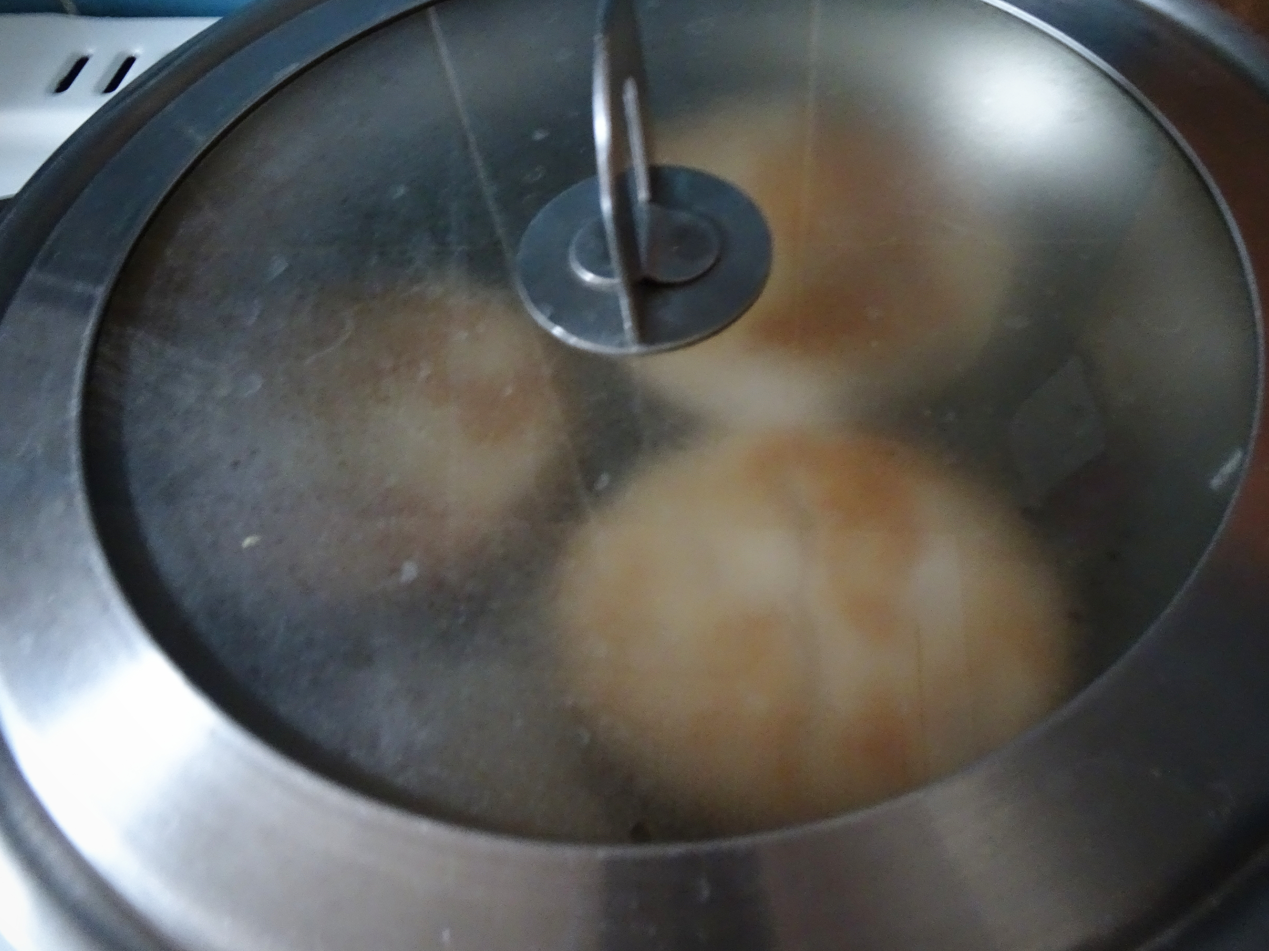 • Put a pan on the stove on medium low heat, add 3 to 4 muffins at a time and put a lid on.